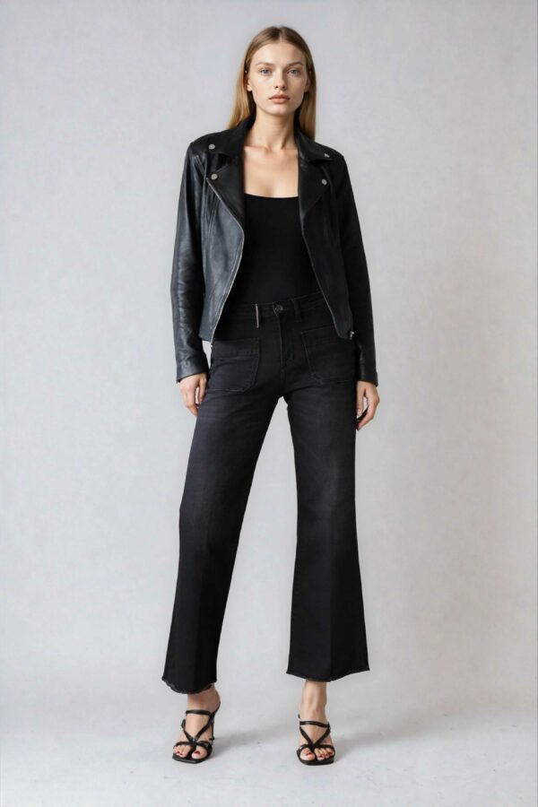 Notre mannequin porte une taille 25 (taille 35 française) et mesure 173 cm.